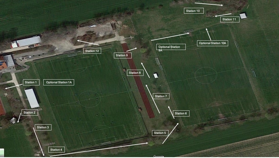 - Abschlag immer vom Kunstrasen aus (bei einigen (optionalen) Station kann auch variiert werden)